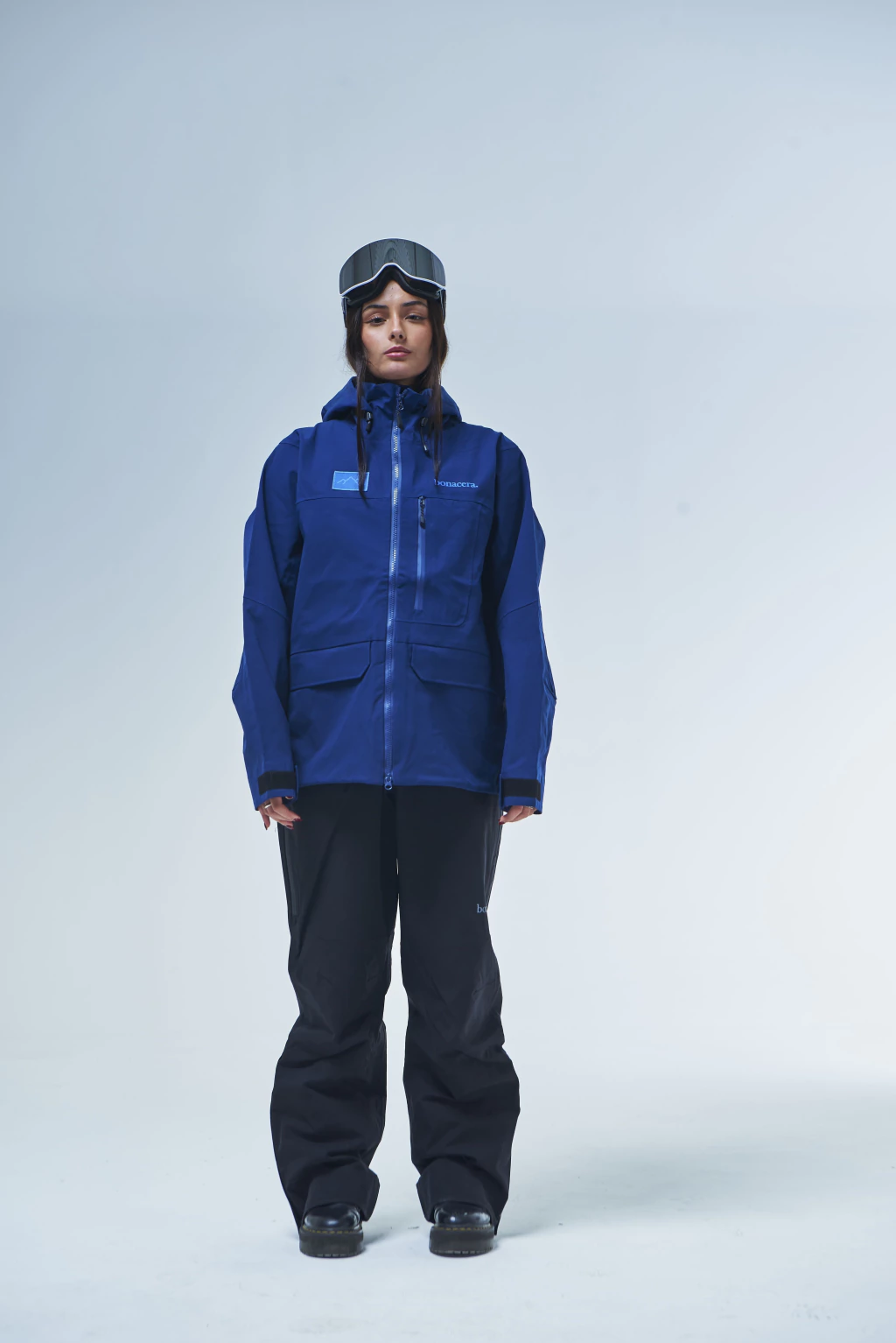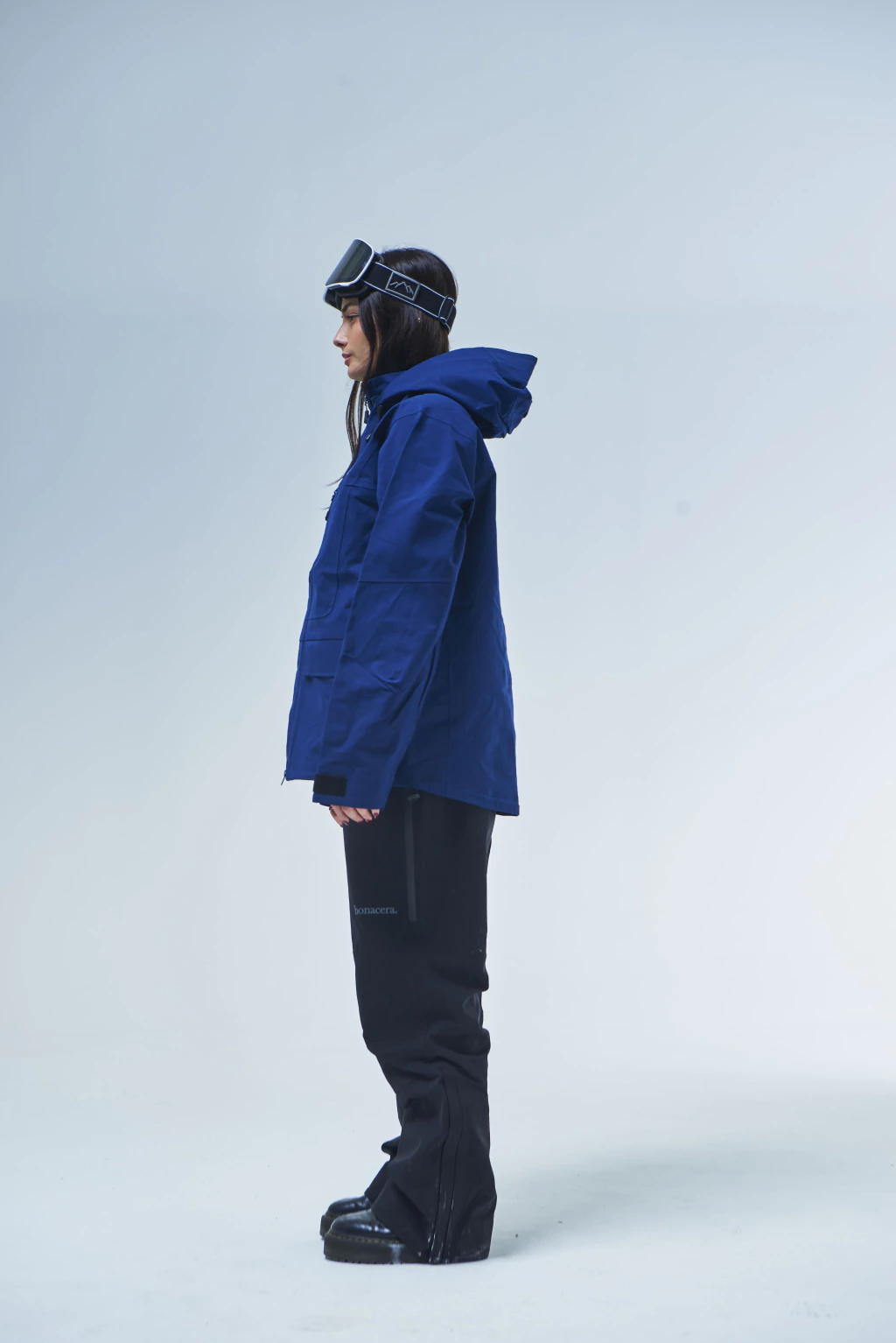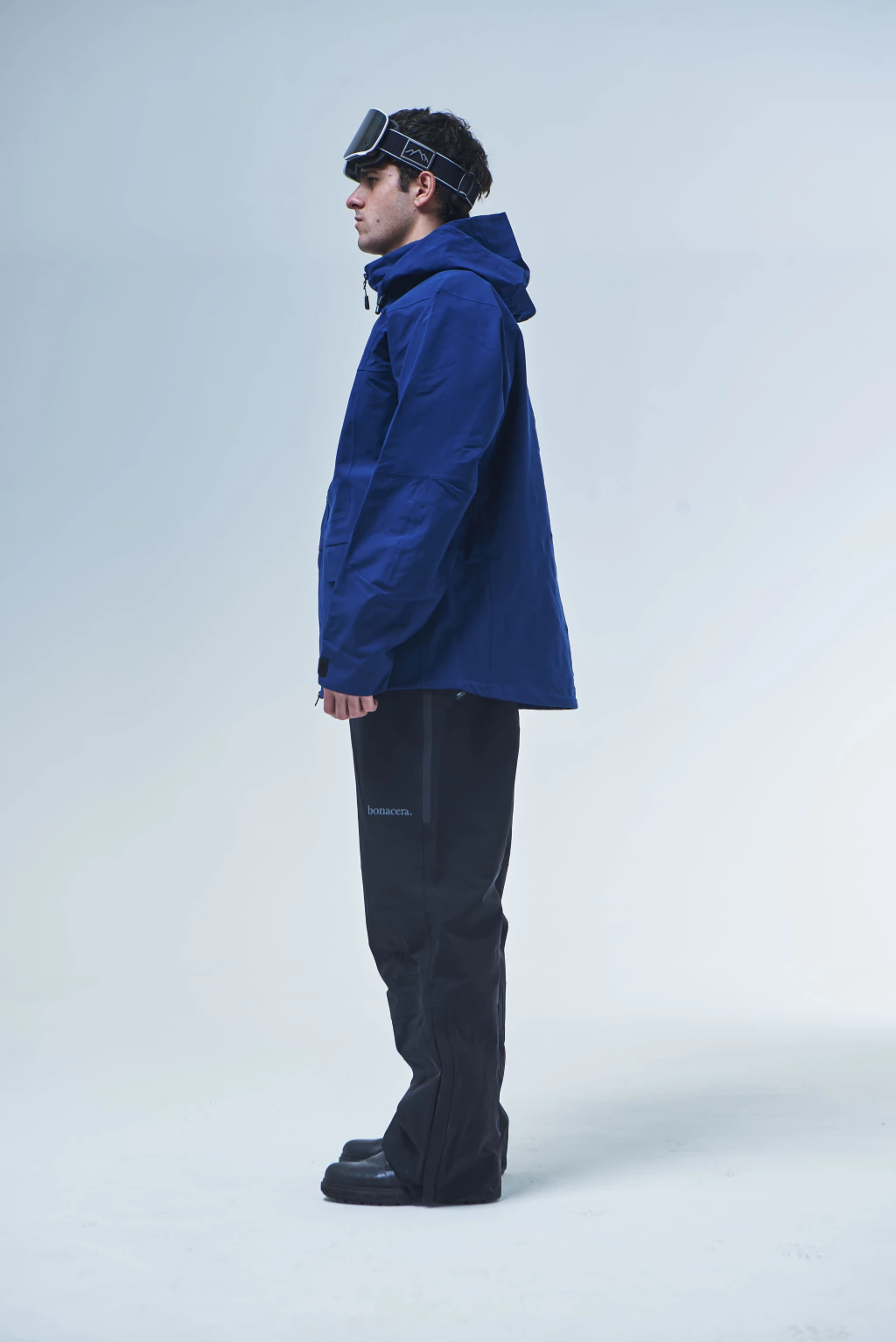 Cuenta con cierre impermeable, costuras termoselladas y ventilación en axilas para regular la temperatura corporal. Dispone de tres bolsillos frontales, dos bolsillos internos y un bolsillo adicional específico para el pase de esquí. El interior está diseñado para usarse en capas, permitiendo libertad de movimiento y aislamiento térmico eficiente. Incluye capucha ajustable compatible con casco y detalles de diseño como un parche bordado exclusivo de Bonacera.